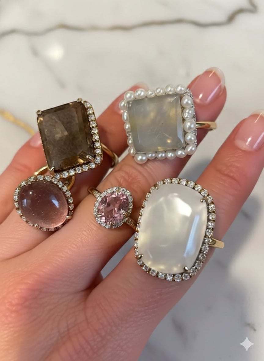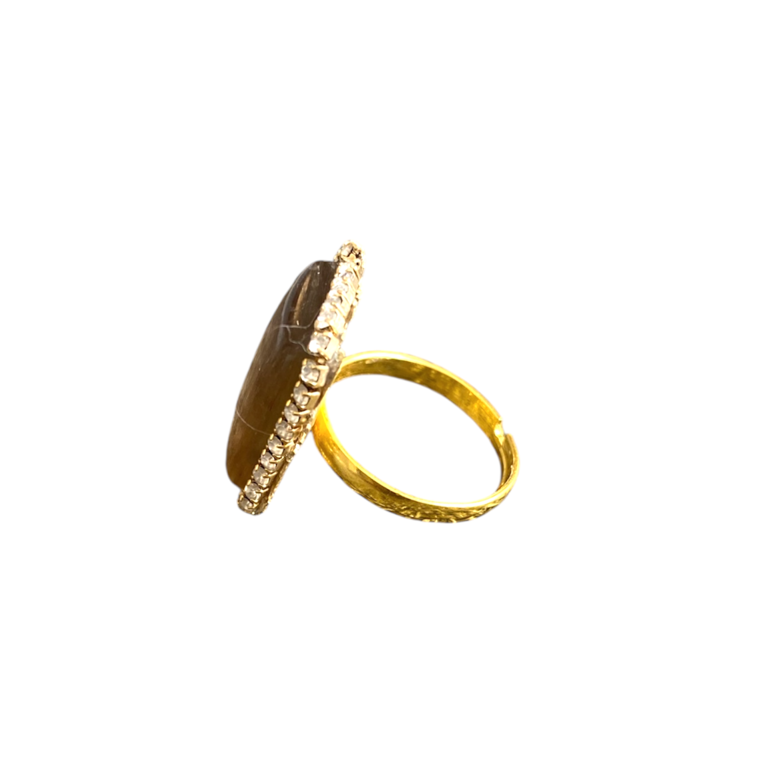 フリーサイズです 「大地の記憶」アンティーク・スモーキーリング 深みのあるブラウンは、長い年月をかけて結晶化した大地のエネルギー。内に秘めた繊細なライン(ルチル)は「運命の糸」を象徴し、進むべき道を照らしてくれるお守りです。 シックなブラウンの石を繊細なビジューで縁取った、大人の品格漂う一点。肌馴染みが良く、手元をぐっと引き締めて知的な印象を与えます。 ※左上のリングです 裏側は本革を貼っていてつけ心地もふんわりです