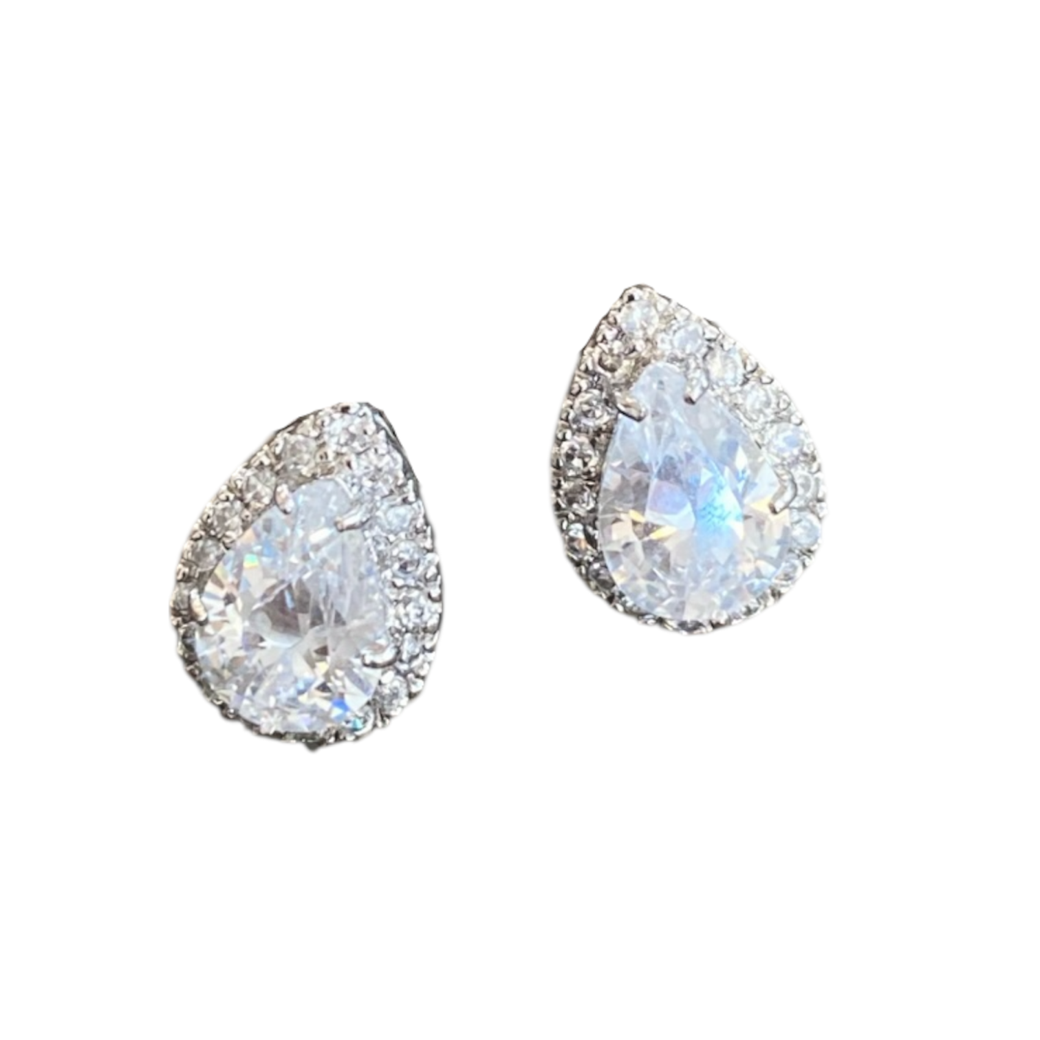 中央の大きな**ペアシェイプ(しずく型)**を、小さなストーンで囲んだ「ヘイローデザイン」。光を多方向に反射し、お顔周りをパッと華やかに明るく見せてくれます。